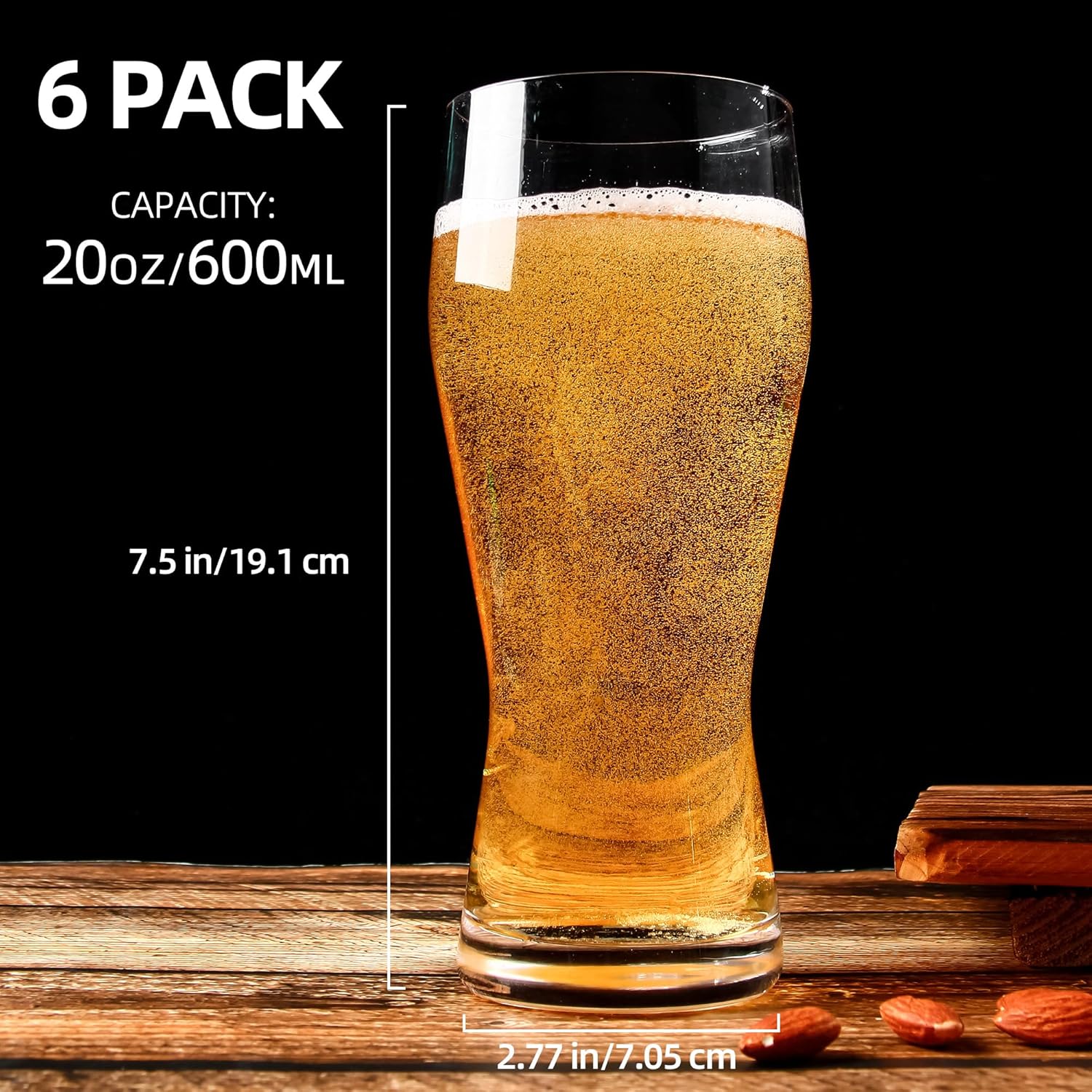 - SET OF 6 glass beer mugs, each with a generous 20oz capacity. Perfect for enjoying your favorite craft beers at home or at parties.