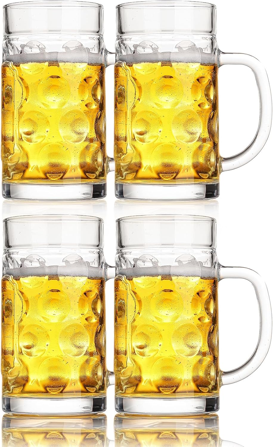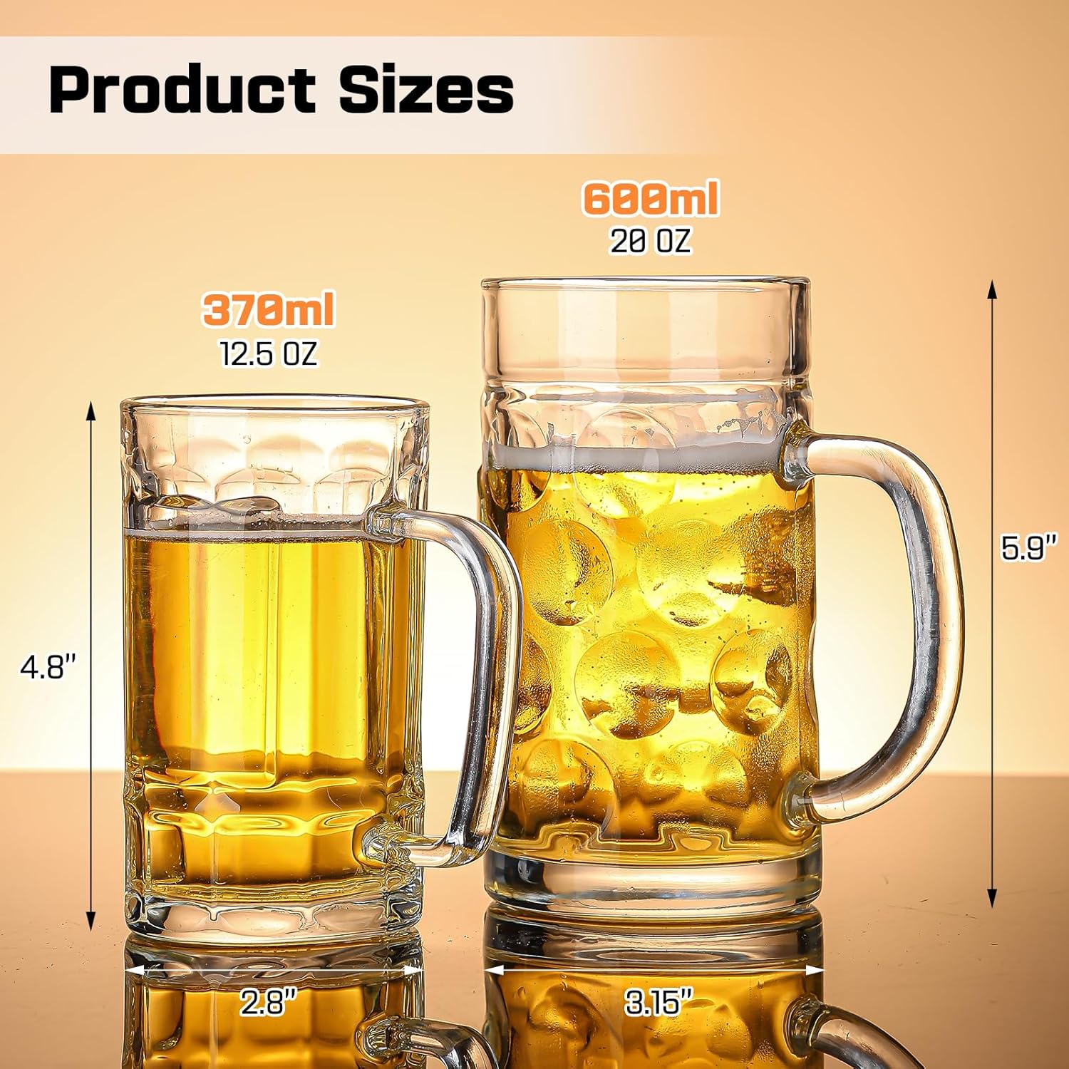 - Customer Service – The beer mugs & steins is 20 oz and 4 packs. It is clean easily and it is wash in diswasher safe. If you received a broken mug or are not satisfied.Please feel free to contact us and we will service you soon
