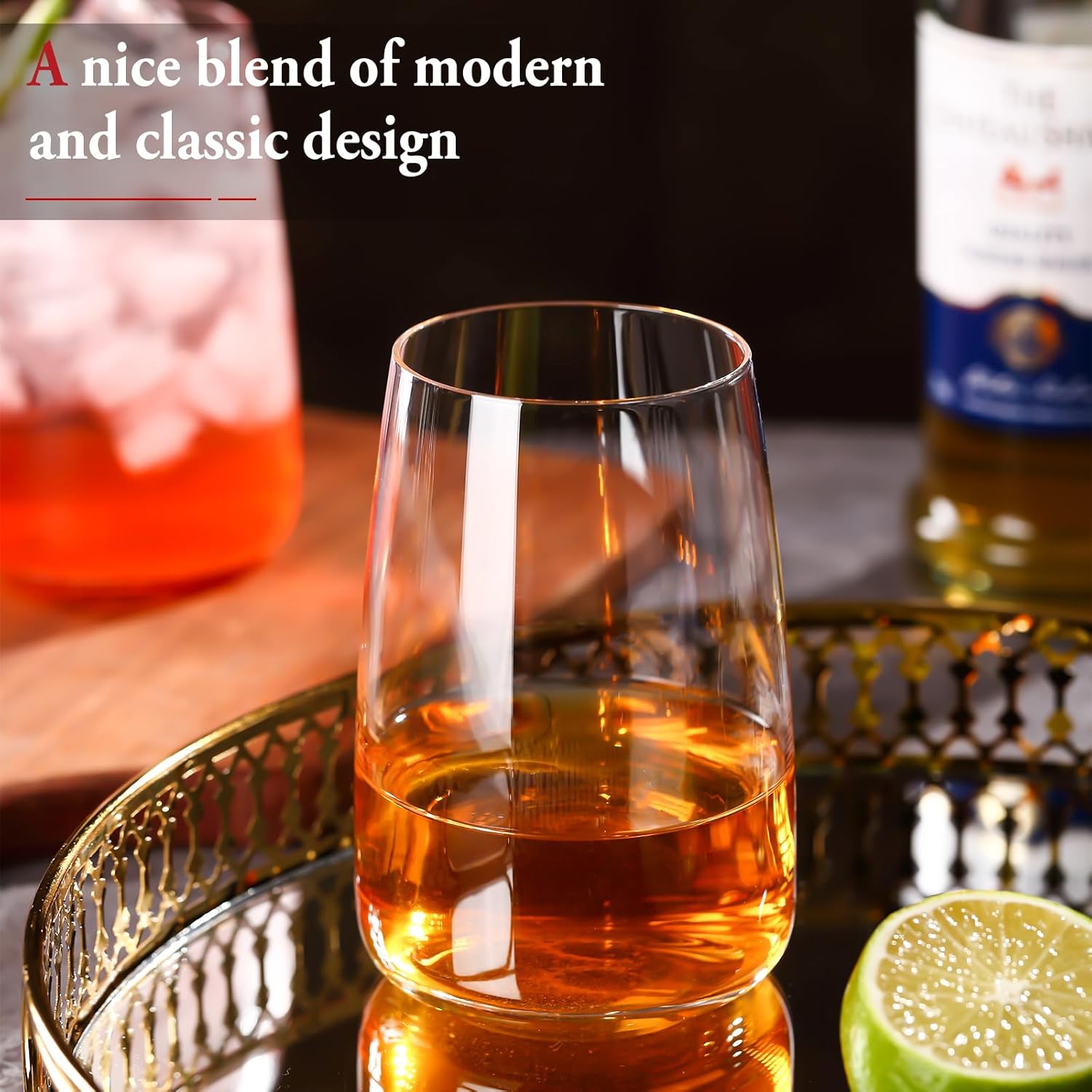 - 💝【Versatile Water Glass】Our elegant set of 4 highball glasses is made of high quality lead-free glass,can be used as a fresh juice glass, milkshake and smoothie glass, beer glass, Tom Collins glass, iced coffee glass.The Water glass cup set will add a touch of modern brilliance entwined in the unique handcrafted perfection for the ultimate joy of sharing.