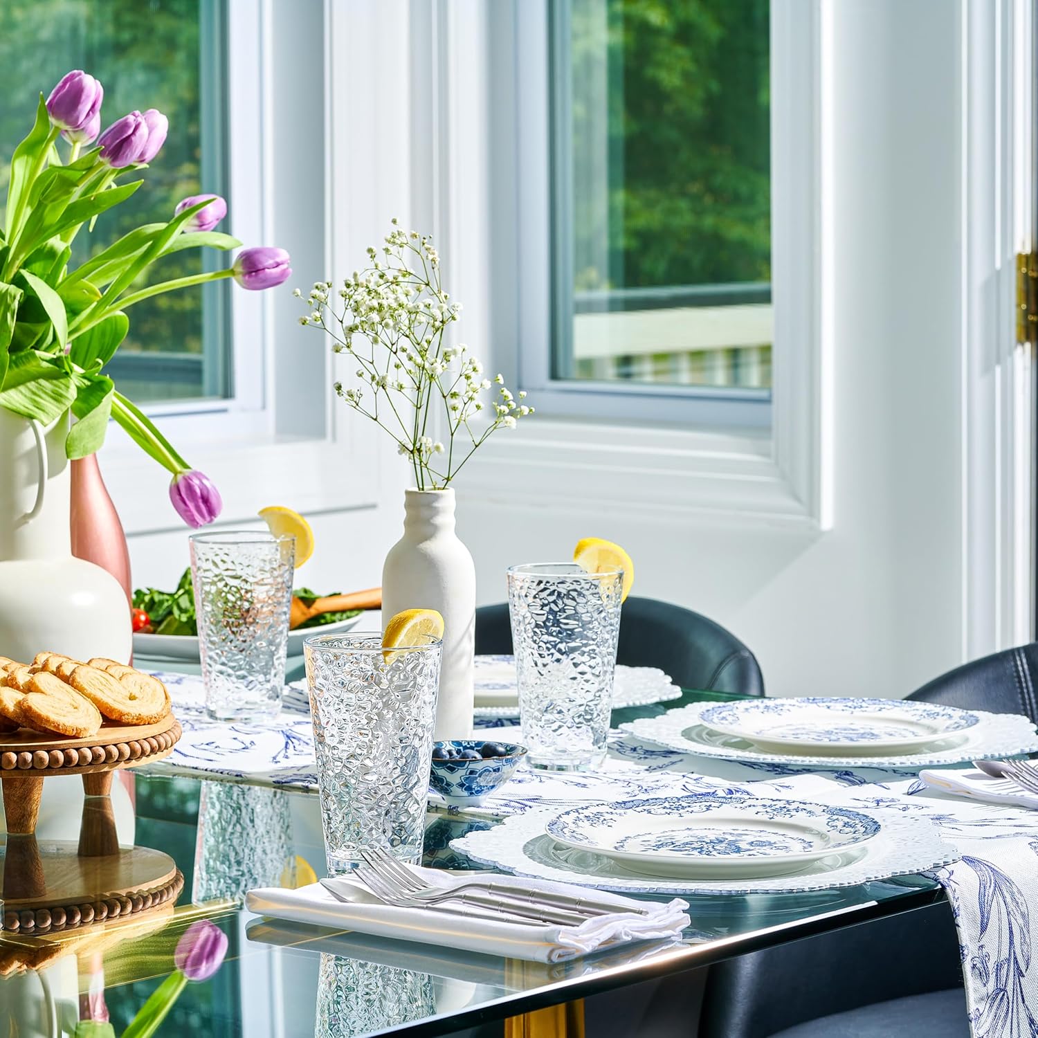 - MODERN & TIMELESS STYLE: The elegant hammered texture and clear glass design blend seamlessly with any decor style—from modern to rustic to vintage. Whether for a formal dinner, cocktail party, or casual family dinner, these glasses add a touch of sophistication. They’re perfect for entertaining guests, with a stylish appearance ideal for whiskey on the rocks, gin and tonics, or even sangrias.